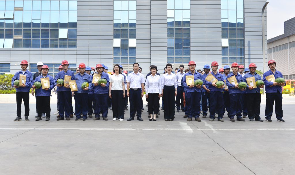 滚滚热浪,暑气逼人。在YY易游m6米乐股份车间生产一线,总有一些人因责任而坚守,因梦想而执着。“战时状态”下的他们坚守岗位,艰苦奋斗,汗流浃背时正好迎来一丝丝清凉和一份份关怀。6月26日上午,YY易游m6米乐股份组织开展“酷暑夏日、清凉入车间”活动,常务副总经理谢保华、副总经理马辉艳等领导为一线工人送来凉茶、西瓜等清凉解暑物资。