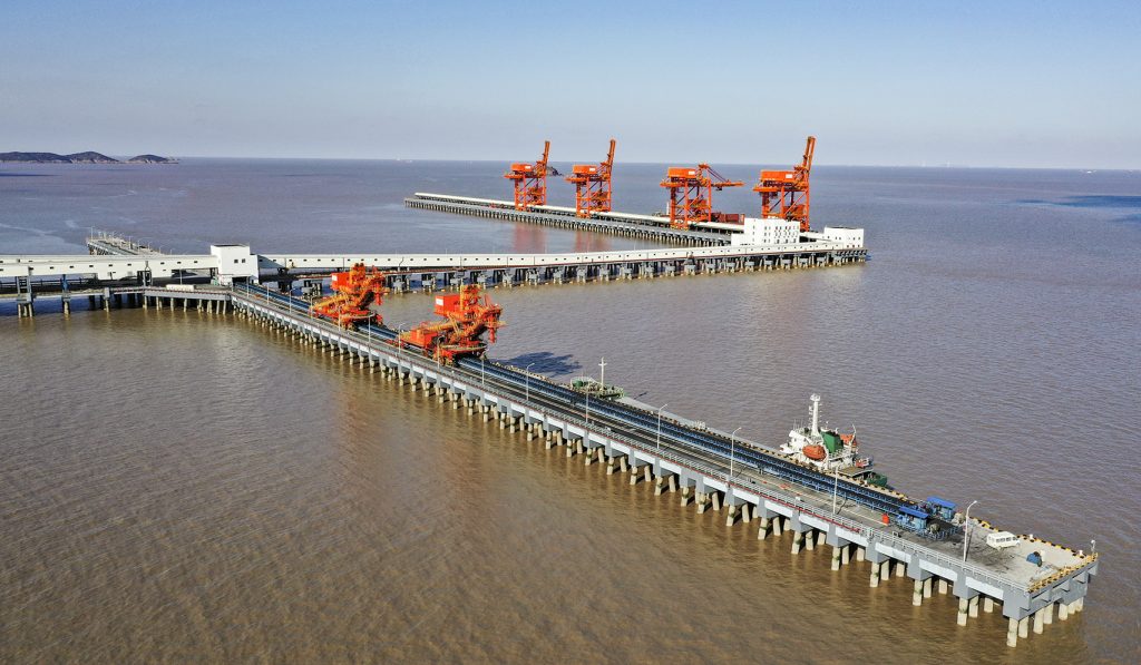 YY易游m6米乐承接的浙江石油化工有限公司4000万吨/年炼化一体化基地配套码头工程干散货码头带式输送机及附属设备系统装置项目,包含8条皮带机及其他附属设备系统,其中4条2200mm大带宽带速5m/s,运量7680t/h,采用中部三驱动布置形式,电机功率3x800kw,单机长度950m。