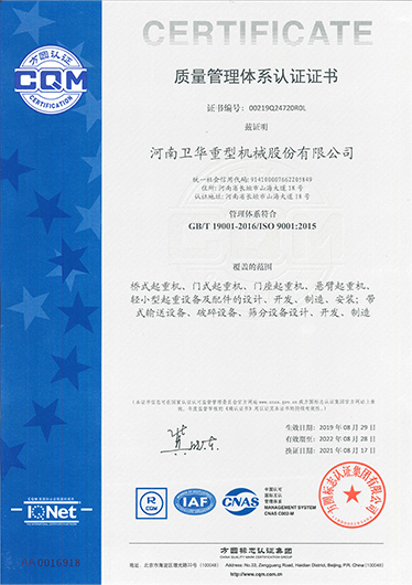 质量管理体系认证证书